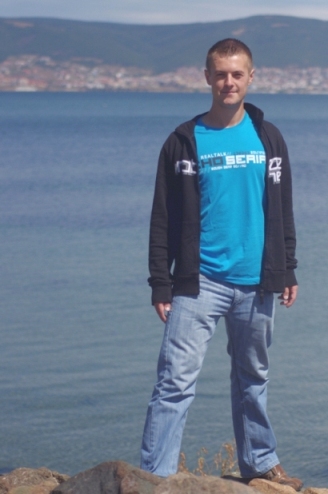 Zdjęcie numer 3 zostało specjalnie przygotowane. Zorganizowałem sesję zdjęciową, w której starannie wybrane zostało miejsce, ubranie, przedmioty (laptop) oraz fotograf. Z kilkunastu zdjęć wybrałem to, które moim zdaniem najtrafniej oddaje cechy które chciałem przekazać: entuzjazm i profesjonalizm. Entuzjazm symbolizowany jest przez kolor pomarańczowy tła oraz przez mój uśmiech. Profesjonalizm akcentowany jest przez moje ubranie (koszula) oraz przez laptopa.